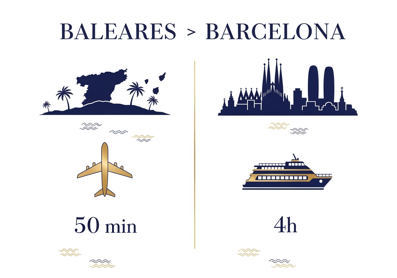 Tanto si vives en Mallorca como en Menorca, Ibiza o Formentera, tu desplazamiento a Barcelona será sencillo y rápido.
