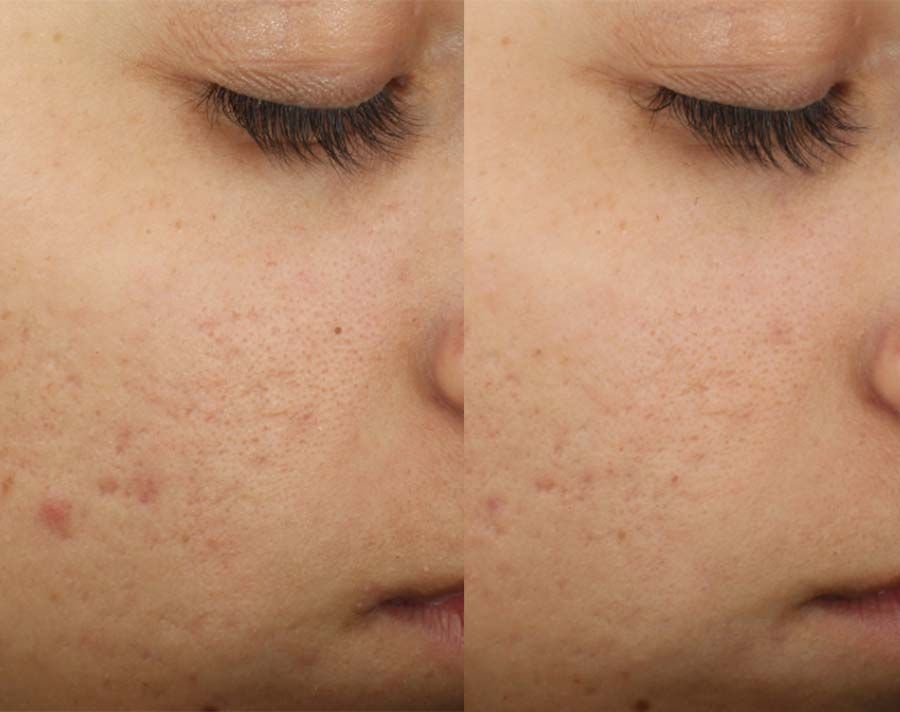 Antes y después usando una pauta combinando Complexion Clearing Masque, Hydrating Cleanser, Hydrating Creme y SPF 50+ (caso extraído de zoskinhealth.com).