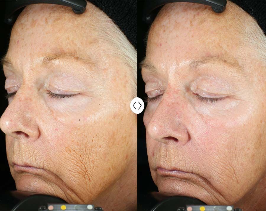 Antes y después usando una pauta combinando Wrinkle + Texture Repair, Exfoliating Polish, Hydrating Creme y SPF 50+ (caso extraído de zoskinhealth.com).