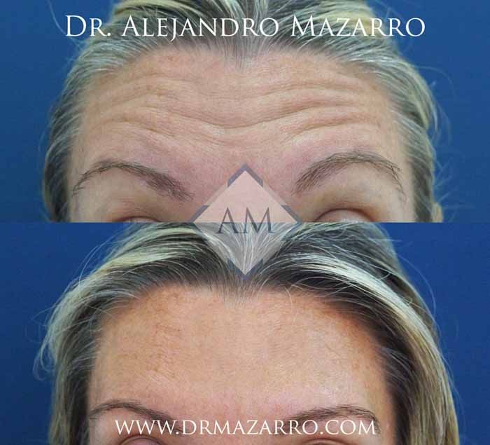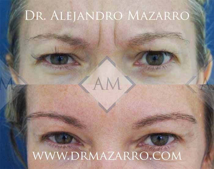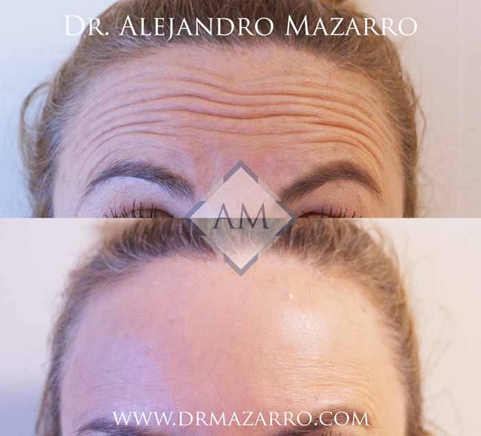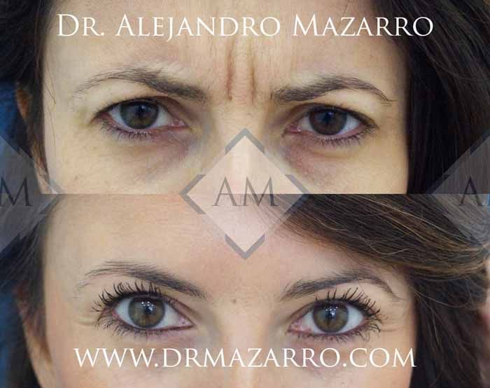 La infiltración de neuromoduladores provoca la relajación de la musculatura responsable de dichas arrugas, y por lo tanto una notable reducción de las mismas.